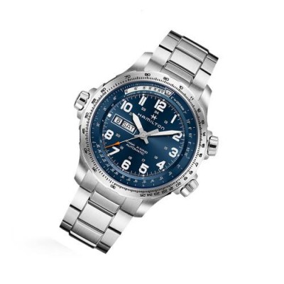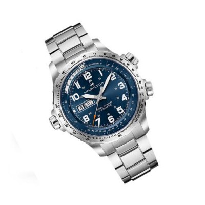 Hamilton/汉米尔顿瑞士手表  卡其航空系列自动机械男表 45mm蓝盘银色钢带 H77765141