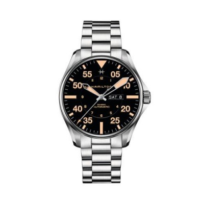 Hamilton/漢密爾頓瑞士手錶卡其航空飛行員系列星際穿越同款自動機械男錶46mm黑盤鋼帶H64725131