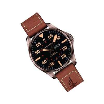 Hamilton/漢密爾頓瑞士手錶卡其航空飛行員系列星際穿越同款自動機械男錶46mm黑盤深棕色皮帶H64705531