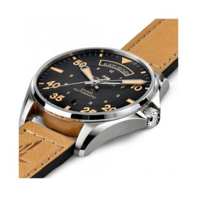 Hamilton/漢密爾頓瑞士手錶卡其航空飛行員系列星際穿越同款自動機械男錶42mm黑盤淺棕色皮帶H64645531