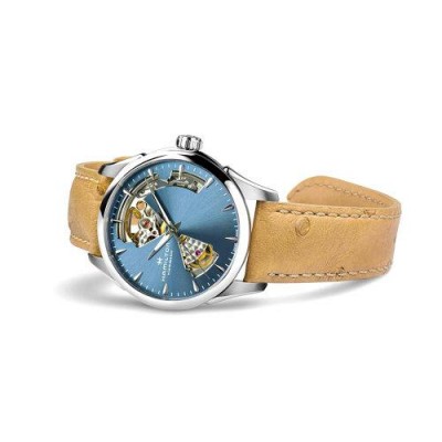Hamilton/漢密爾頓瑞士手錶爵士系列OPEN HEART AUTO自動機械女錶H32215840 36mm霧藍色盤鴕鳥皮