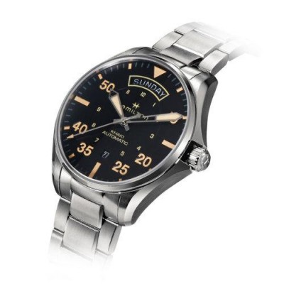 Hamilton/漢密爾頓瑞士手錶卡其航空飛行員系列星際穿越同款自動機械男錶H64645131 42mm黑盤鋼帶