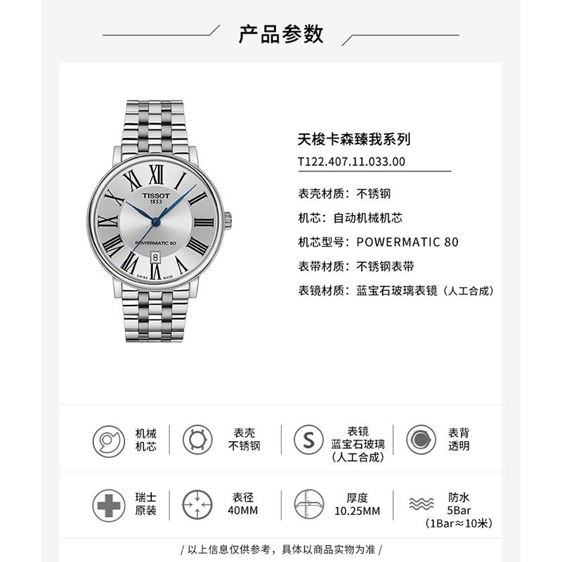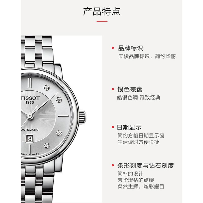 【包税】现货 TISSOT/天梭  卡森臻我系列精钢表壳表链女士自动机械腕表