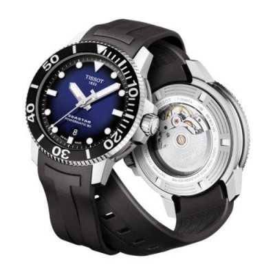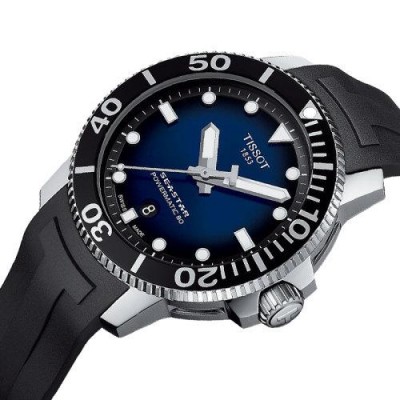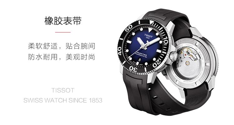 TISSOT/天梭瑞士手錶海星系列橡膠錶帶自動機械運動潜水男士腕表皮帶藍盤T120.407.17.041.00