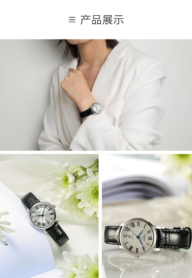 TISSOT/天梭瑞士手表 卡森臻我系列皮带自动机械女士腕表 皮带银盘T122.207.16.033.00