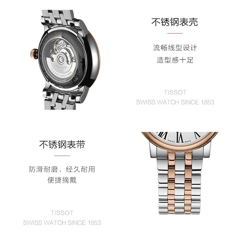 TISSOT/天梭瑞士手錶卡森臻我系列鋼帶自動機械女士腕表鋼帶銀盤T122.207.22.033.00