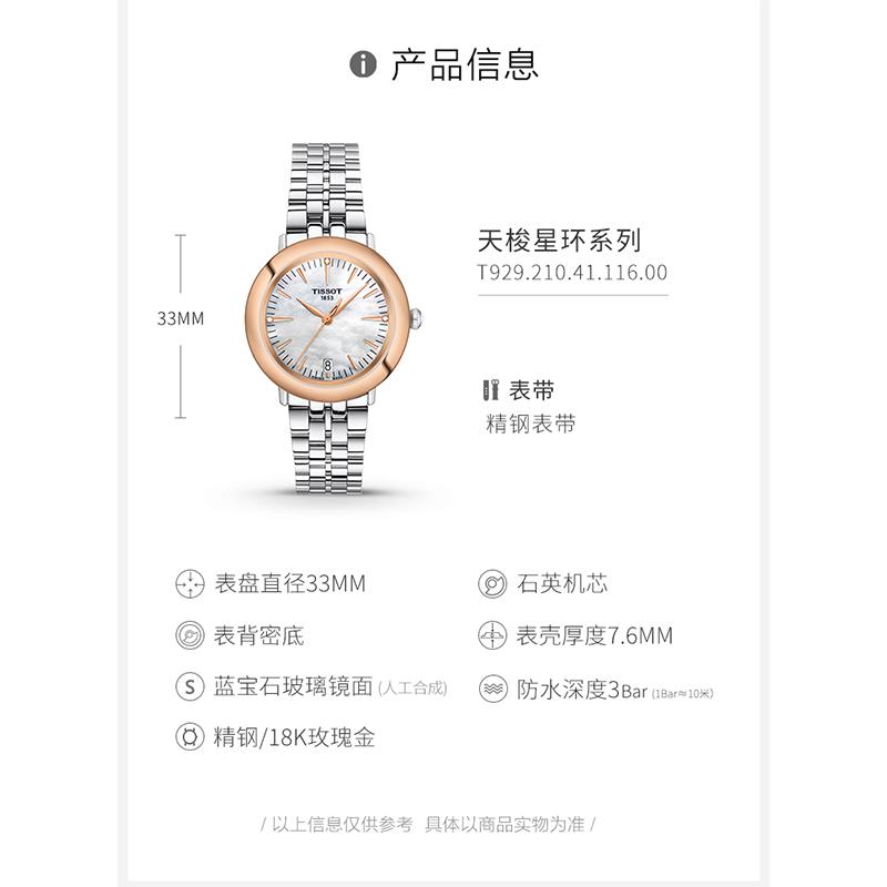 【包稅】預定款1-2周TISSOT/天梭星環系列18K金玫瑰金錶殼精鋼錶帶女士石英腕表33毫米