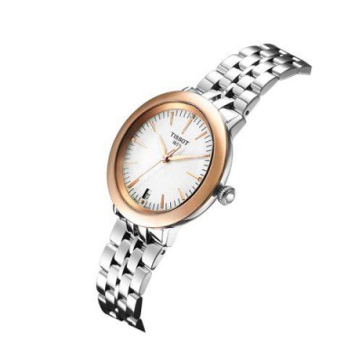 首頁 > 腕表 > 天梭 > 【包稅】預定款1-2周TISSOT/天梭星環系列18K金玫瑰金錶殼精鋼錶帶女士石英腕表33毫米