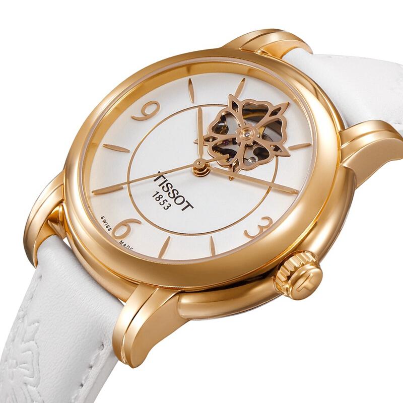 【正品盒装】TISSOT/天梭 心媛系列 白盘镀镂空 数字与条丁刻度 白皮带 机械女表 T050.207.37.017.04