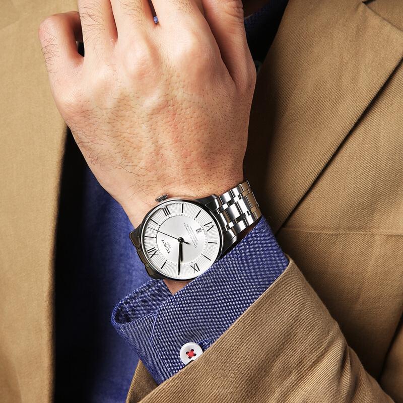 【正品盒装】TISSOT/天梭 杜鲁尔系列 银盘 罗马与条丁刻度 天文台认证 钢带 机械男表 T099.408.11.038.00