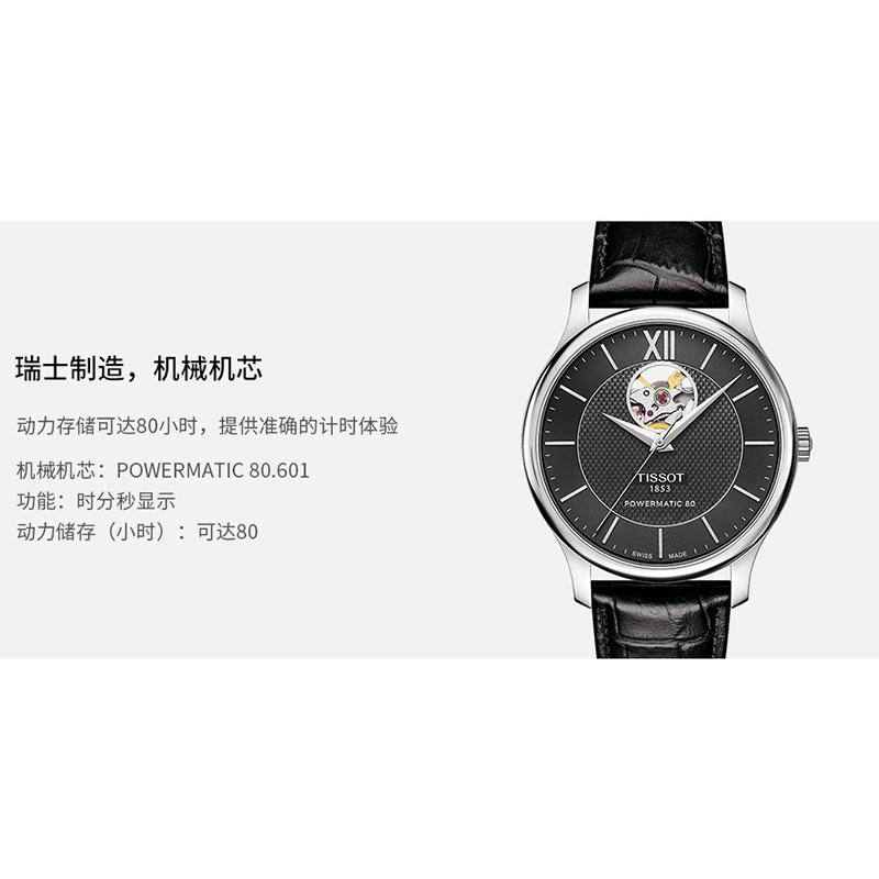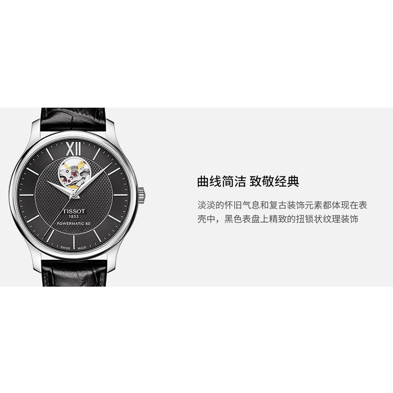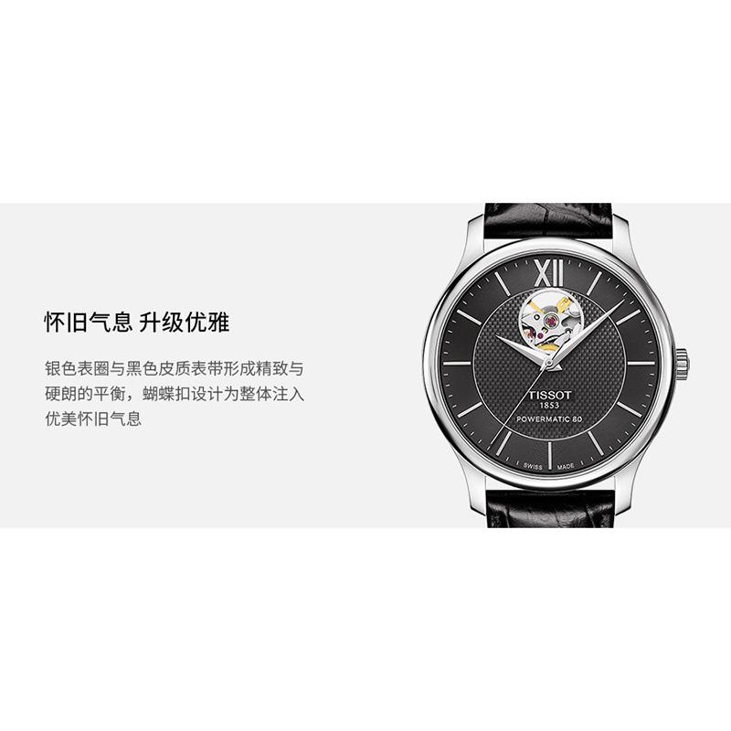 【包稅】現貨TISSOT/天梭俊雅系列精鋼錶殼黑盤黑色皮質錶帶男士80機芯自動機械腕表40毫米