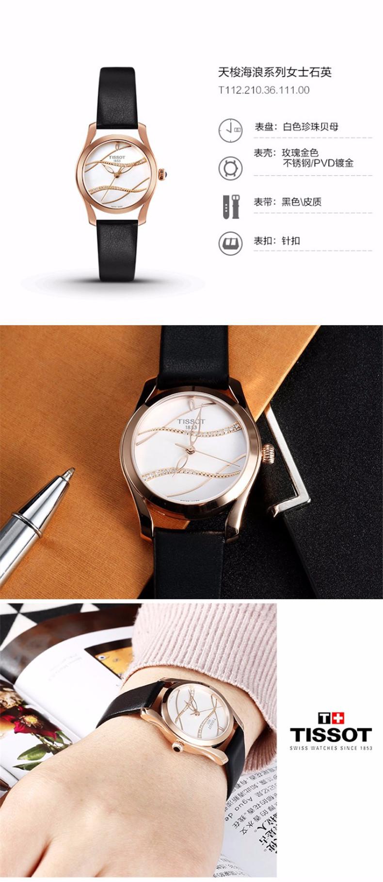 TISSOT/天梭瑞士手錶海浪系列石英機芯女士腕表皮帶白盤T112.210.36.111.00