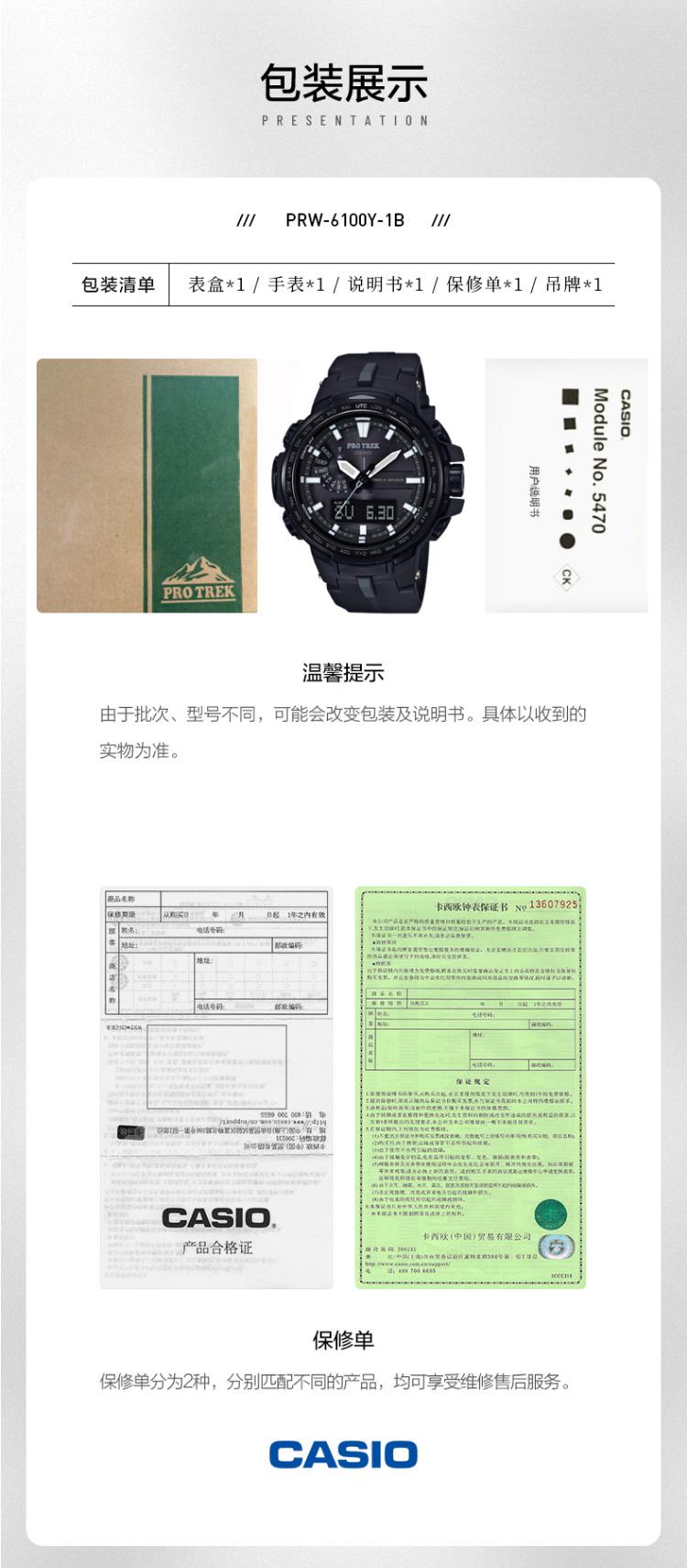 CASIO/卡西欧 PROTREK登山系列太阳能动力电波六局运动防水男表PRW-6100Y