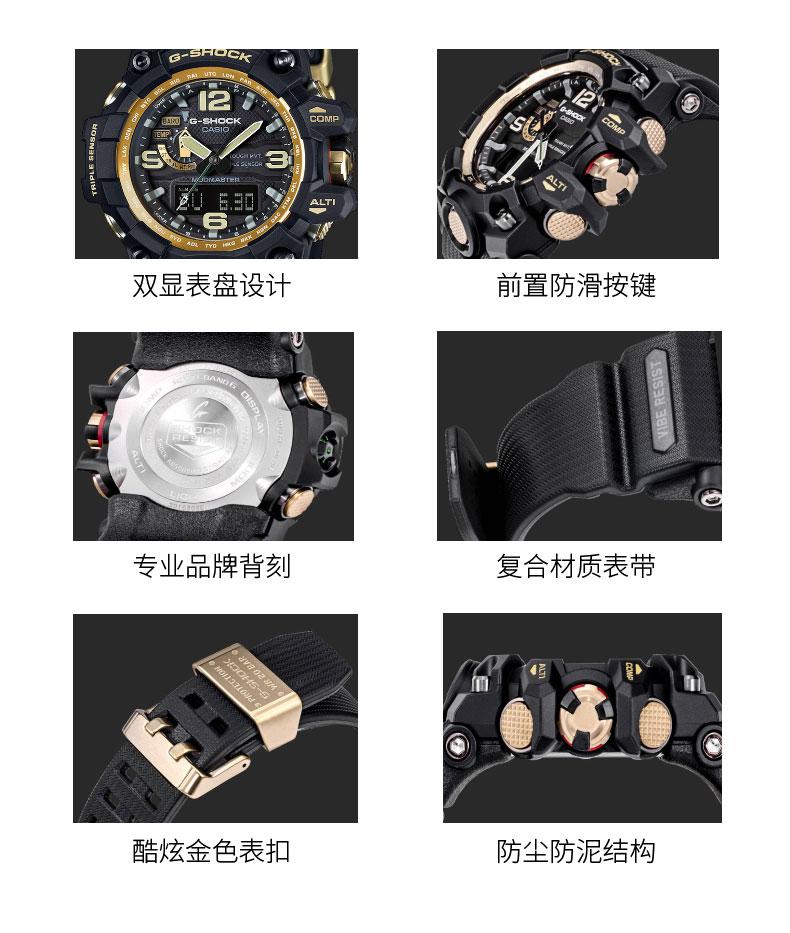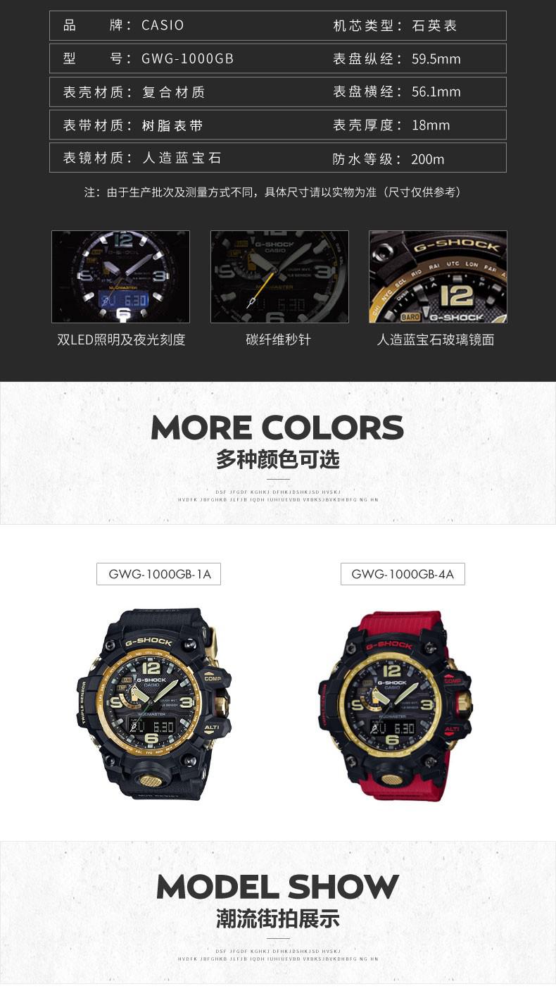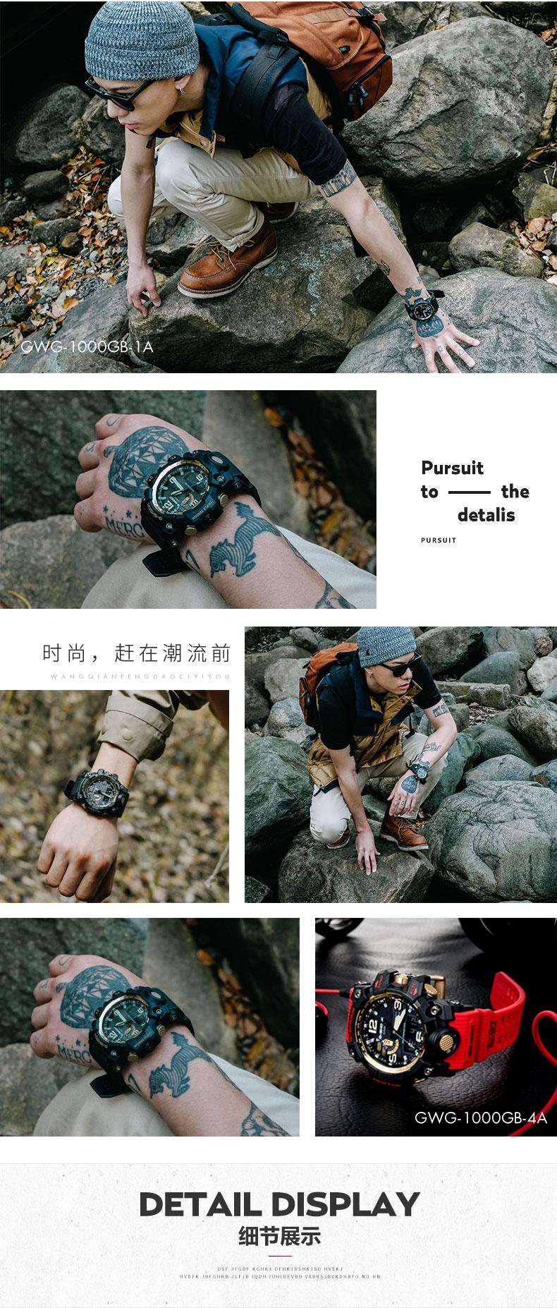 CASIO/卡西欧 G-SHOCK系列大泥王太阳能电波六局时尚防水男表GWG-1000GB-1APR