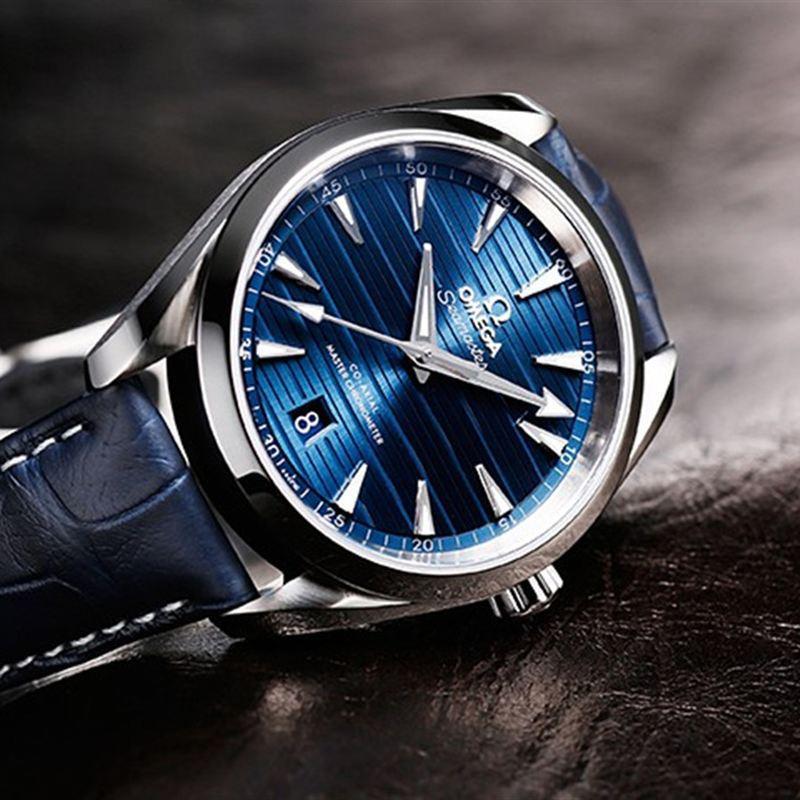 OMEGA/欧米茄瑞士手表 海马系列日历至臻天文台自动机械男士腕表 皮带蓝盘220.13.38.20.03.001