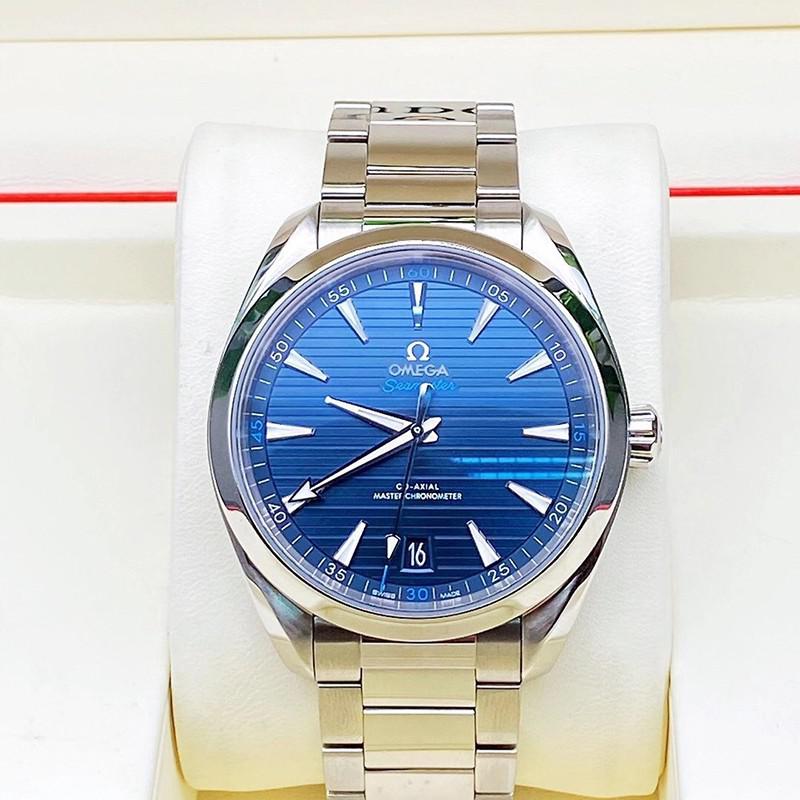 OMEGA/歐米茄瑞士手錶海馬系列行事曆防水150m至臻天文臺自動機械男士腕表鋼帶藍盤220.10.41.21.03.004