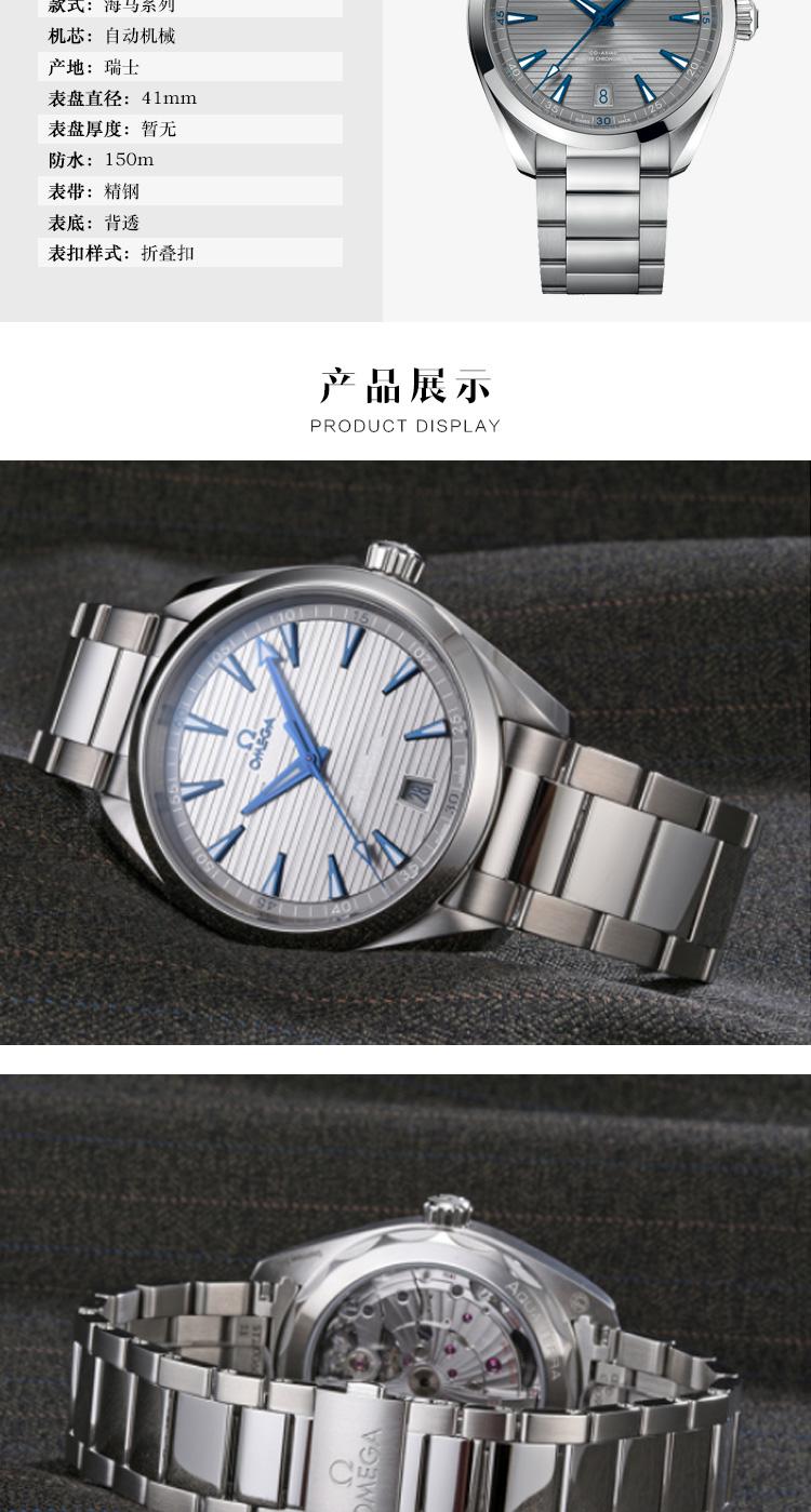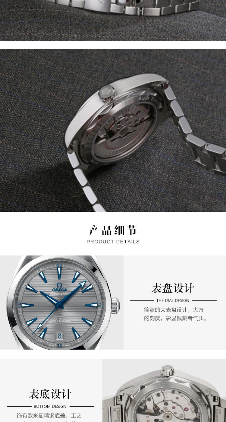 OMEGA/歐米茄瑞士手錶海馬系列行事曆自動機械男士腕表鋼帶灰盤220.10.41.21.06.001
