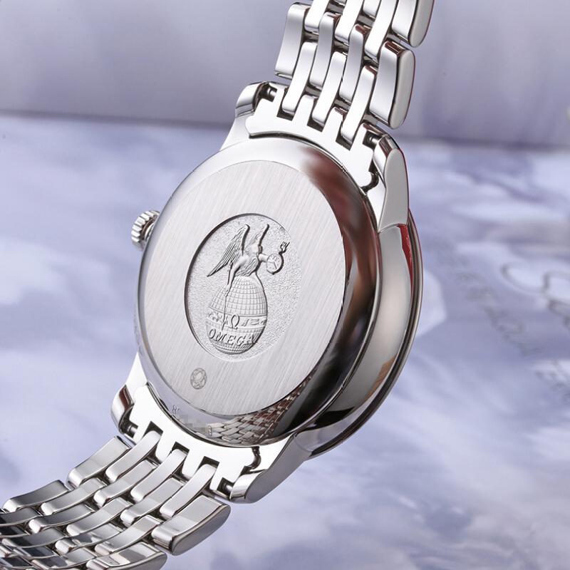 OMEGA/欧米茄瑞士手表 碟飞系列日历镶钻自动机械女士腕表 钢带银盘424.10.33.20.52.001