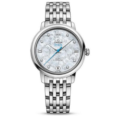 OMEGA/欧米茄瑞士手表 碟飞系列日历镶钻自动机械女士腕表  钢带白盘424.10.33.20.55.004