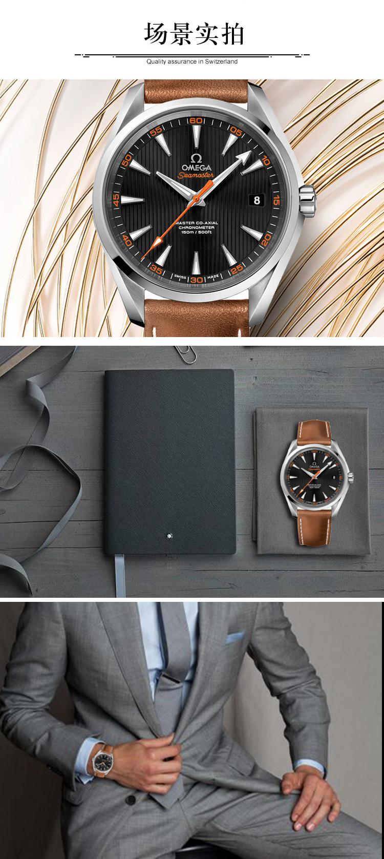 OMEGA/歐米茄瑞士手錶海馬系列行事曆自動機械男士腕表皮帶黑盤231.12.42.21.01.002