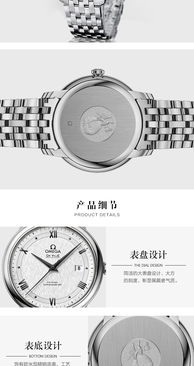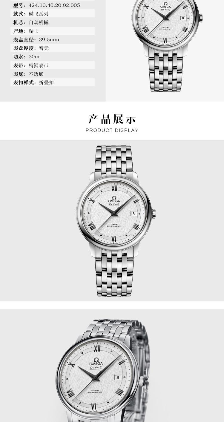OMEGA/欧米茄瑞士手表 碟飞系列日历自动机械男士腕表 钢带白盘424.10.40.20.02.005