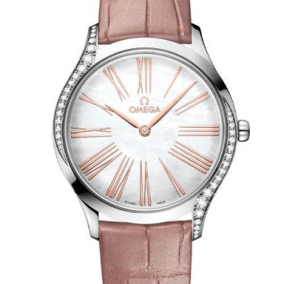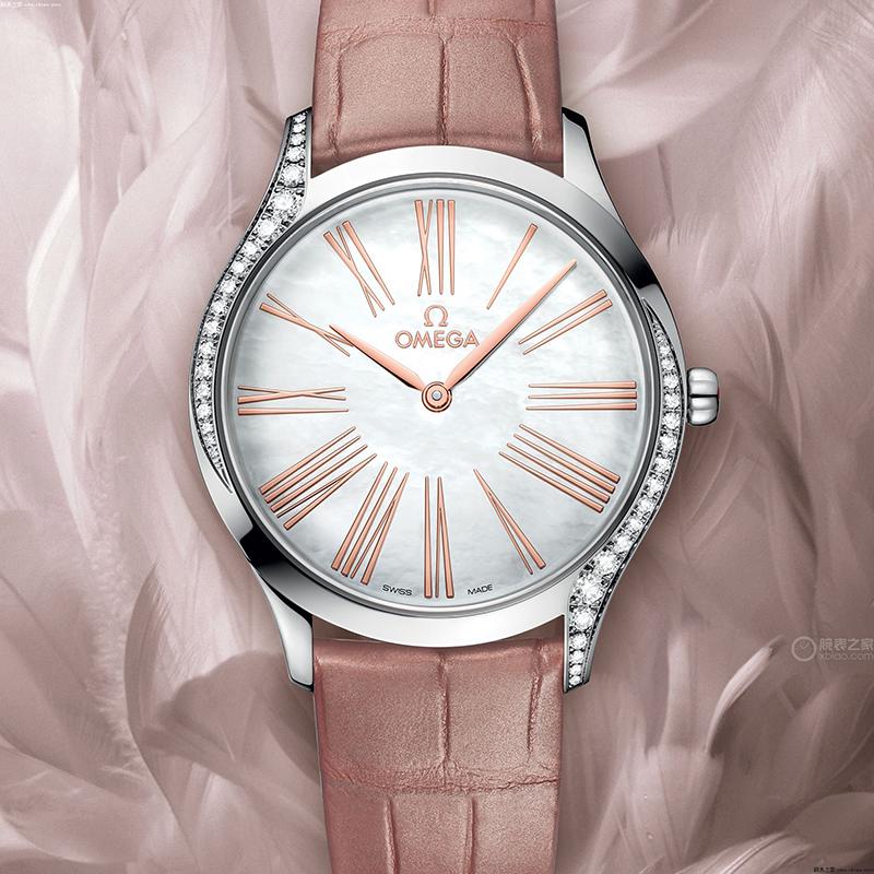 OMEGA/欧米茄瑞士手表 碟飞系列镶钻石英表气质女士腕表 皮带白盘428.18.36.60.05.002