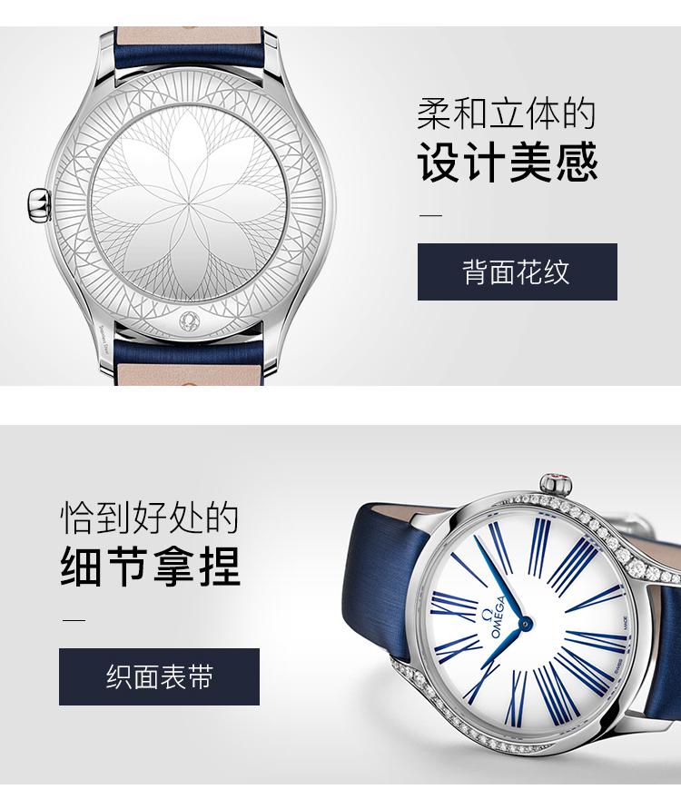 OMEGA/欧米茄瑞士手表 碟飞系列镶钻石英女士腕表 皮带蓝盘428.17.36.60.04.001