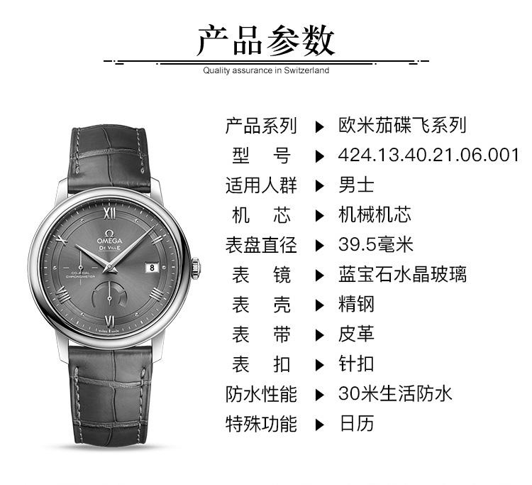 OMEGA/欧米茄瑞士手表 碟飞系列自动机械男士腕表 皮带黑盘424.13.40.21.06.001