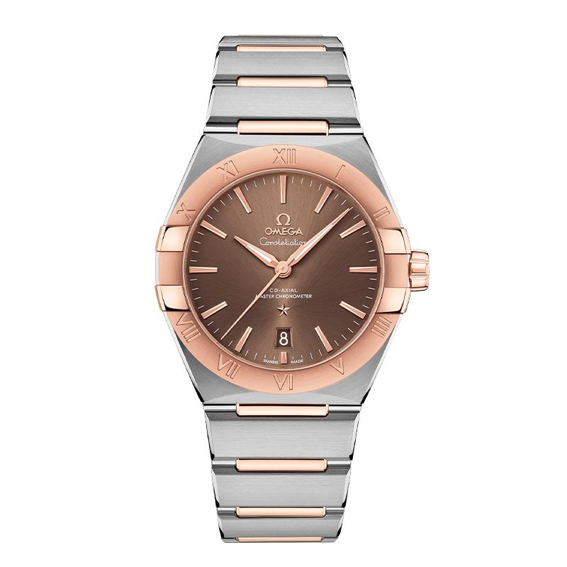 OMEGA/歐米茄瑞士手錶星座系列行事曆自動機械機芯商務男士腕表鋼帶棕盤131.20.39.20.13.001