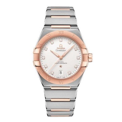 OMEGA/欧米茄瑞士手表 星座系列日历镶钻自动机械机芯商务男士腕表 钢带银盘131.20.39.20.52.001