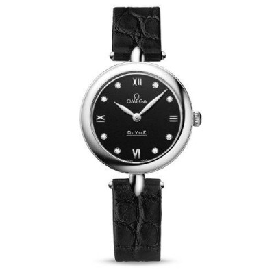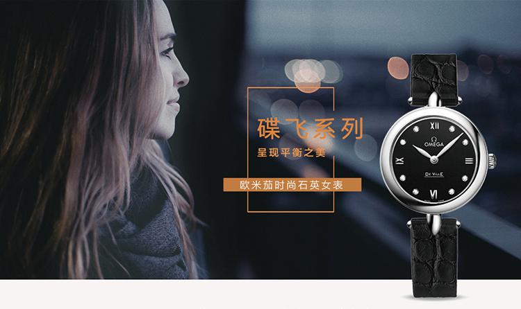 OMEGA/歐米茄瑞士手錶碟飛系列鑲鑽女士石英腕表皮帶黑盤424.13.27.60.51.001