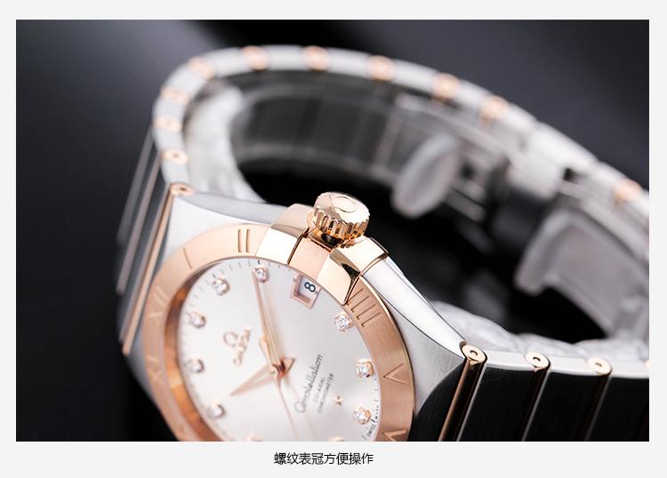 OMEGA/歐米茄瑞士手錶星座系列行事曆鑲鑽自動機械男士腕表鋼帶銀盤123.20.38.21.52.001