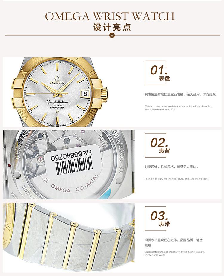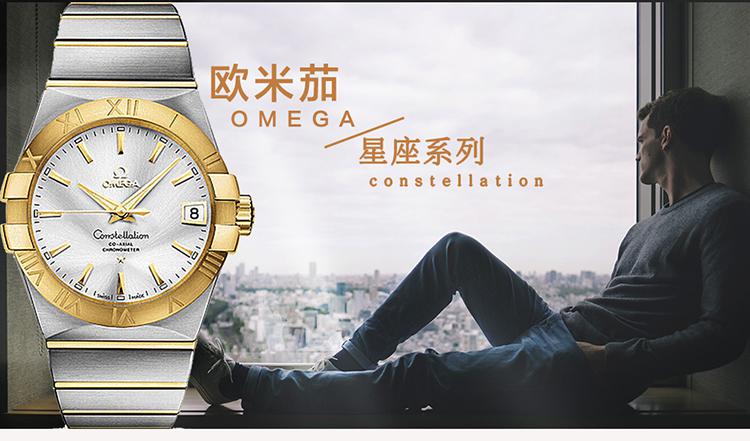 OMEGA/歐米茄瑞士手錶星座系列行事曆自動機械男士腕表鋼帶銀盤123.20.38.21.02.002