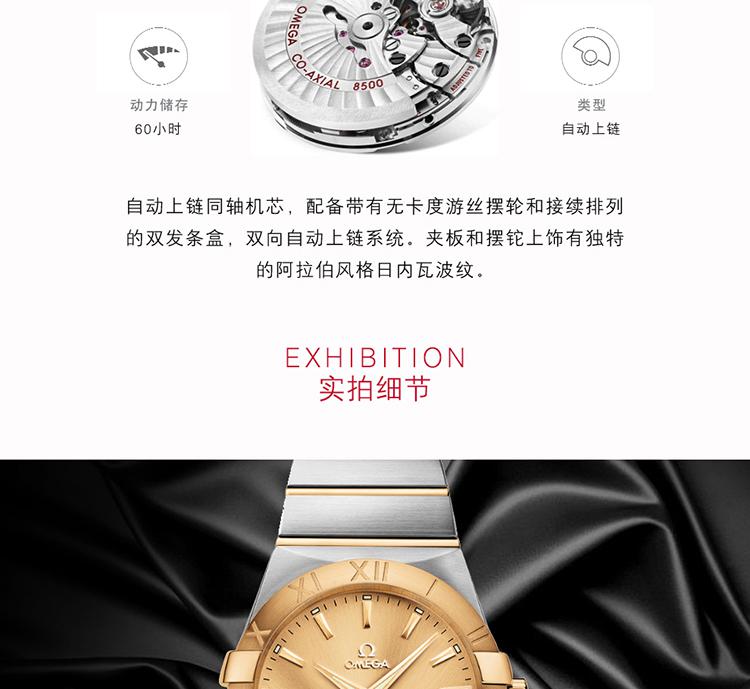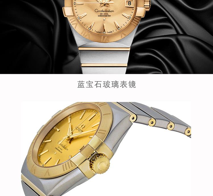 OMEGA/歐米茄瑞士手錶星座系列行事曆自動機械男士腕表鋼帶金盤123.20.38.21.08.001