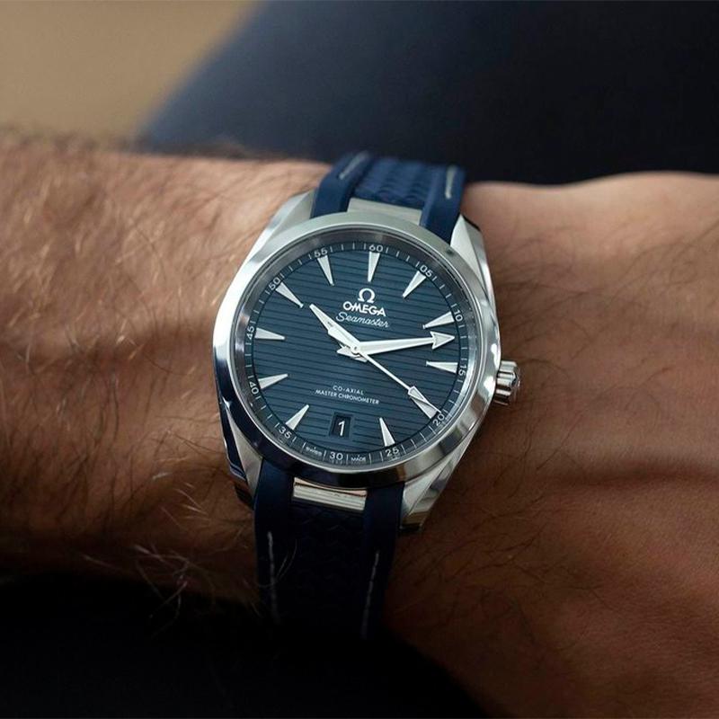 OMEGA/欧米茄瑞士手表 海马系列日历自动机械表时尚防水男士腕表 皮带蓝盘220.12.38.20.03.001