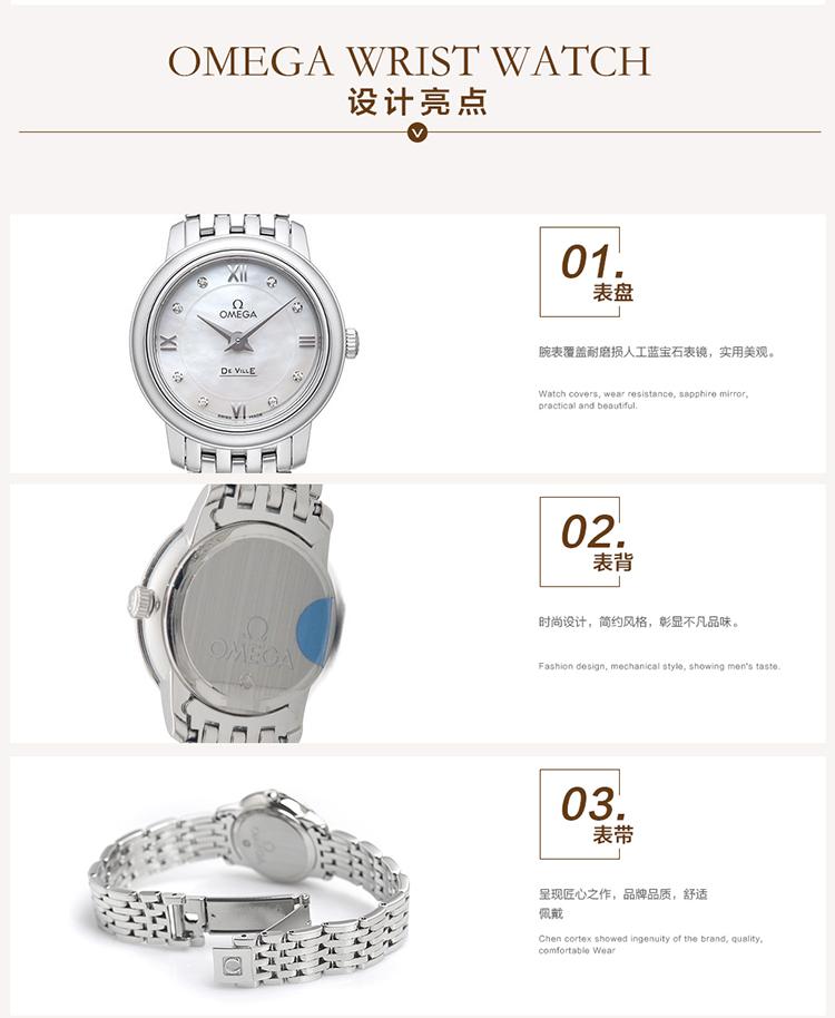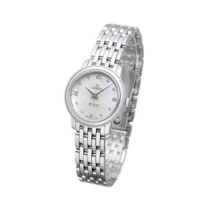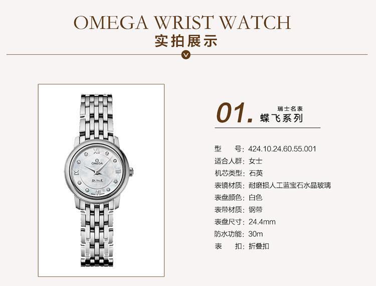 OMEGA/欧米茄瑞士手表 碟飞系列镶钻石英机芯女士腕表 钢带白盘424.10.24.60.55.001