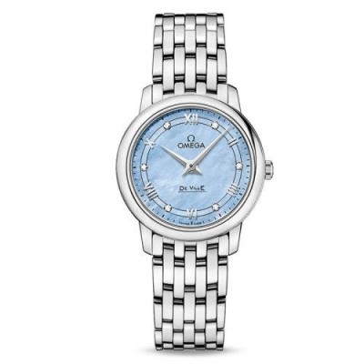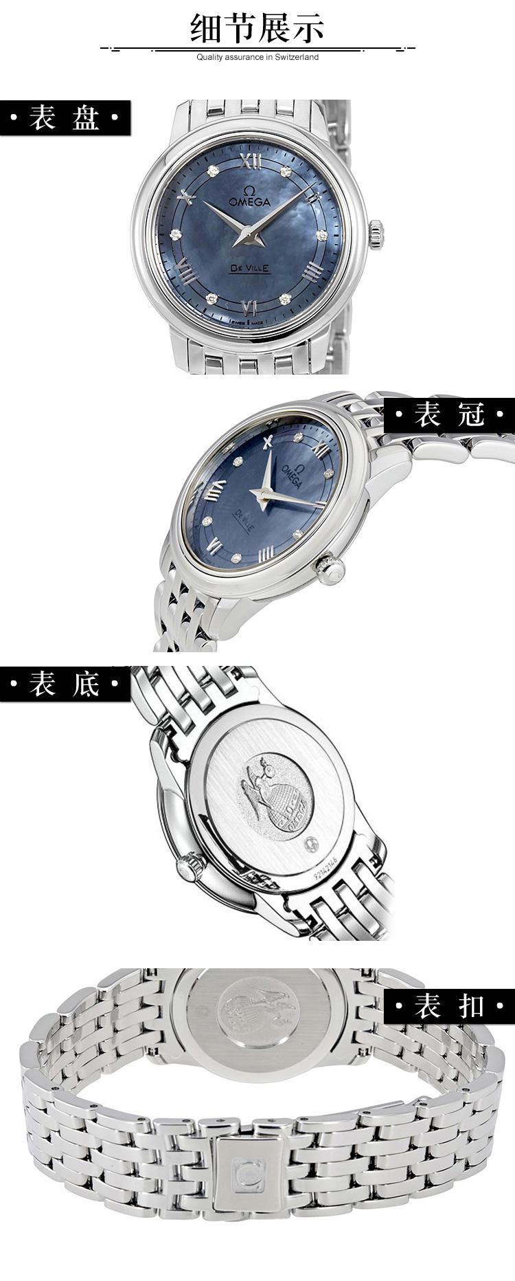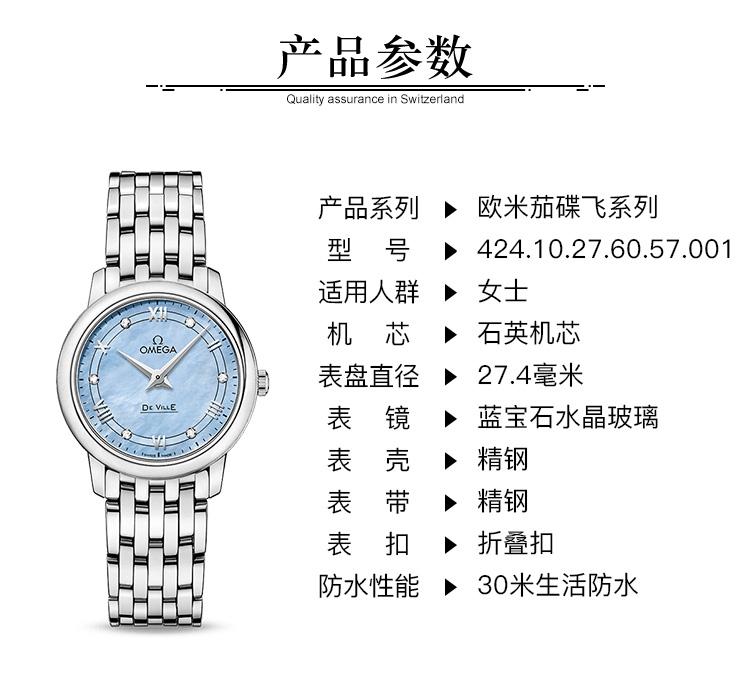 OMEGA/欧米茄瑞士手表 碟飞系列镶钻石英机芯女士腕表 钢带蓝盘424.10.27.60.57.001