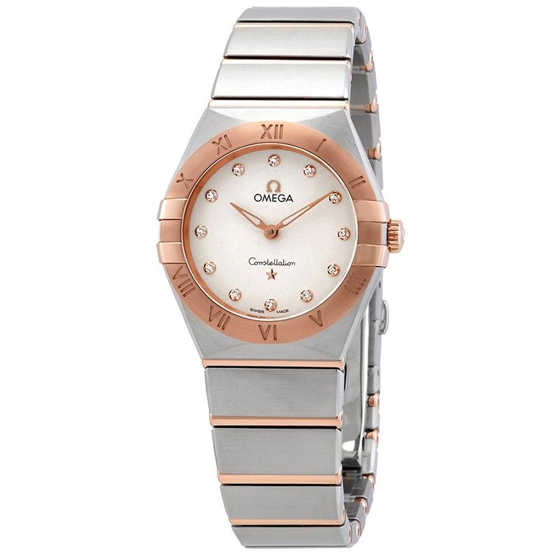 OMEGA/歐米茄瑞士手錶星座系列曼哈頓鑲鑽石英女士腕表鋼帶銀盤131.20.28.60.52.001