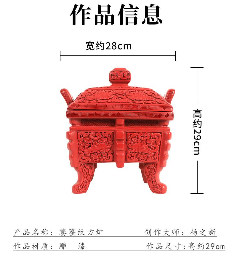 首頁 > 商務禮品 > 中藝盛嘉 > 中藝盛嘉楊之新雕漆《饕餮紋方爐》中藝堂收藏品