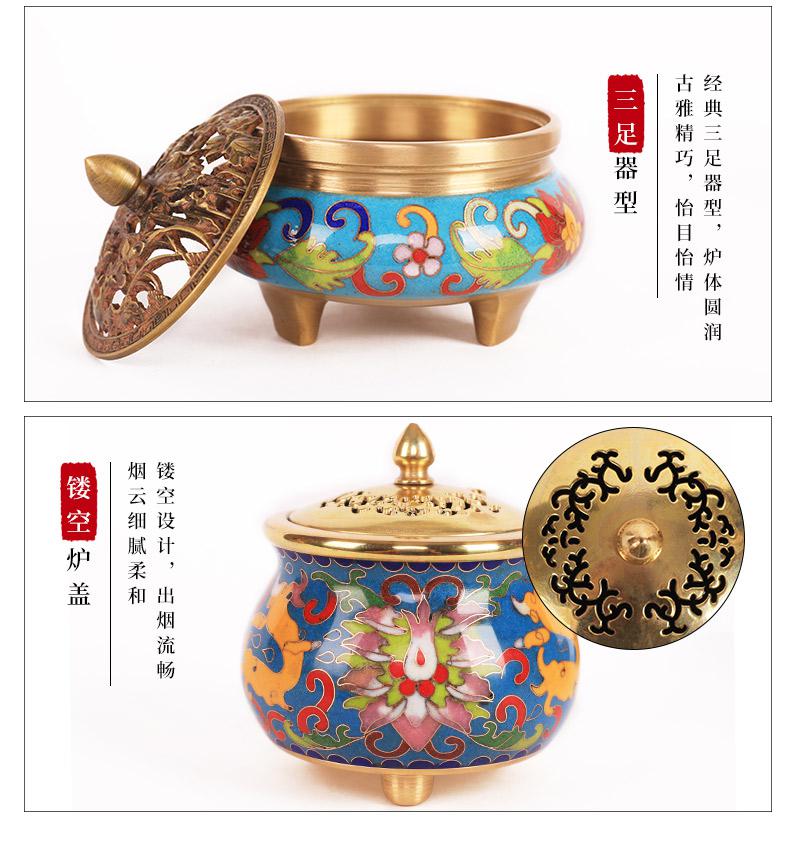 首頁 > 商務禮品 > 中藝盛嘉 > 中藝盛嘉景泰藍香爐珐琅銅純仿古三足香薰爐香檀香家用線香