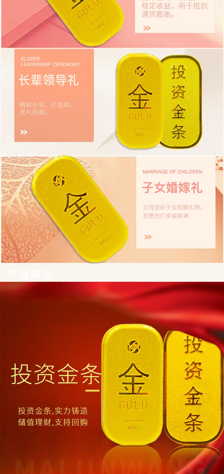 首頁 > 金銀投資 > 買金網 > maijinwang/買金網投資金條20克Au9999黃金/金磚純金20g支持回購順豐包郵投資送禮收藏