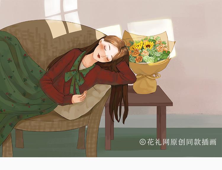 花礼/晴朗/香槟玫瑰11枝,向日葵2枝//七夕情人节礼物鲜花/当日达