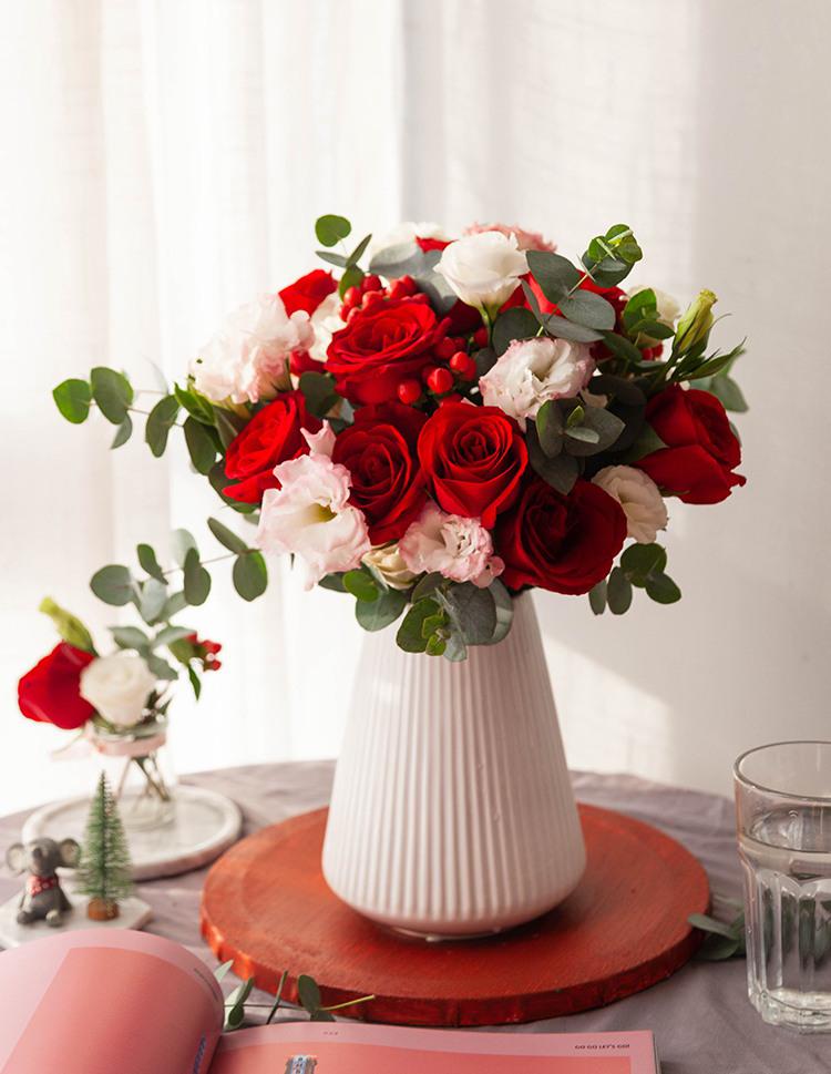 花礼/韩式系列/初心不负/卡罗拉玫瑰11枝、白底粉边洋桔梗、大叶尤加利鲜花/七夕情人节礼物鲜花/当日达