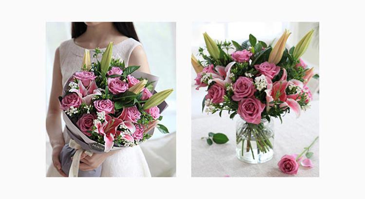 首頁 > 鮮花綠植 > 花禮 > 花禮/浪漫香氣/11枝冷美人紫玫瑰,多頭粉百合2枝/七夕情人節禮物鮮花送人/提前1天預訂