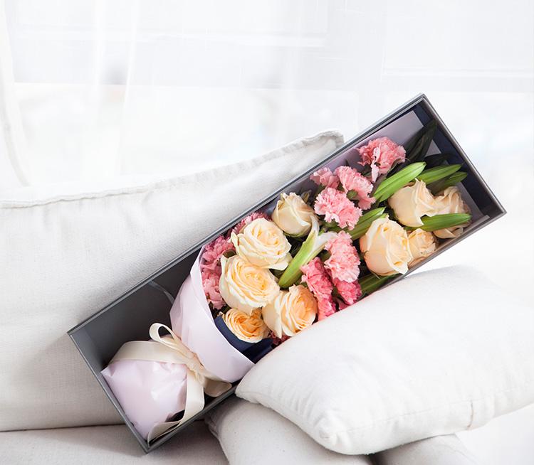 首頁 > 鮮花綠植 > 花禮 > 花禮/溫馨問候/香檳玫瑰9枝、多頭白百合2枝、粉色康乃馨13枝//七夕情人節禮物鮮花/當日達