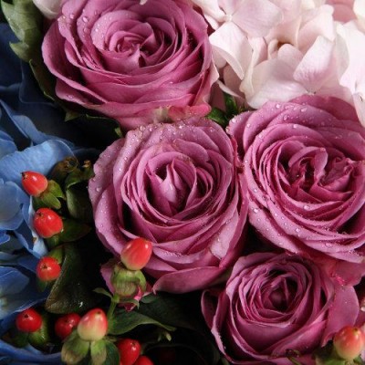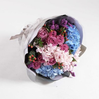 首頁 > 鮮花綠植 > 花禮 > 花禮/花仙子/藍繡球2枝、粉繡球,紫玫瑰/七夕情人節禮物鮮花送人/當日達