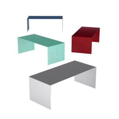 经过精心加工的薄铝板弯曲,使桌面具有整齐的线条和强烈的个性。