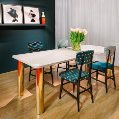优雅的桌子灵感来自萨克斯管的颜色和二十年代的闪亮派对。