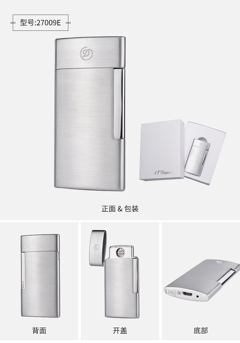 S.T. DUPONT/都彭新品E-SLIM系列輕薄USB充電無需燃料無火焰打火機拉絲銀27009E