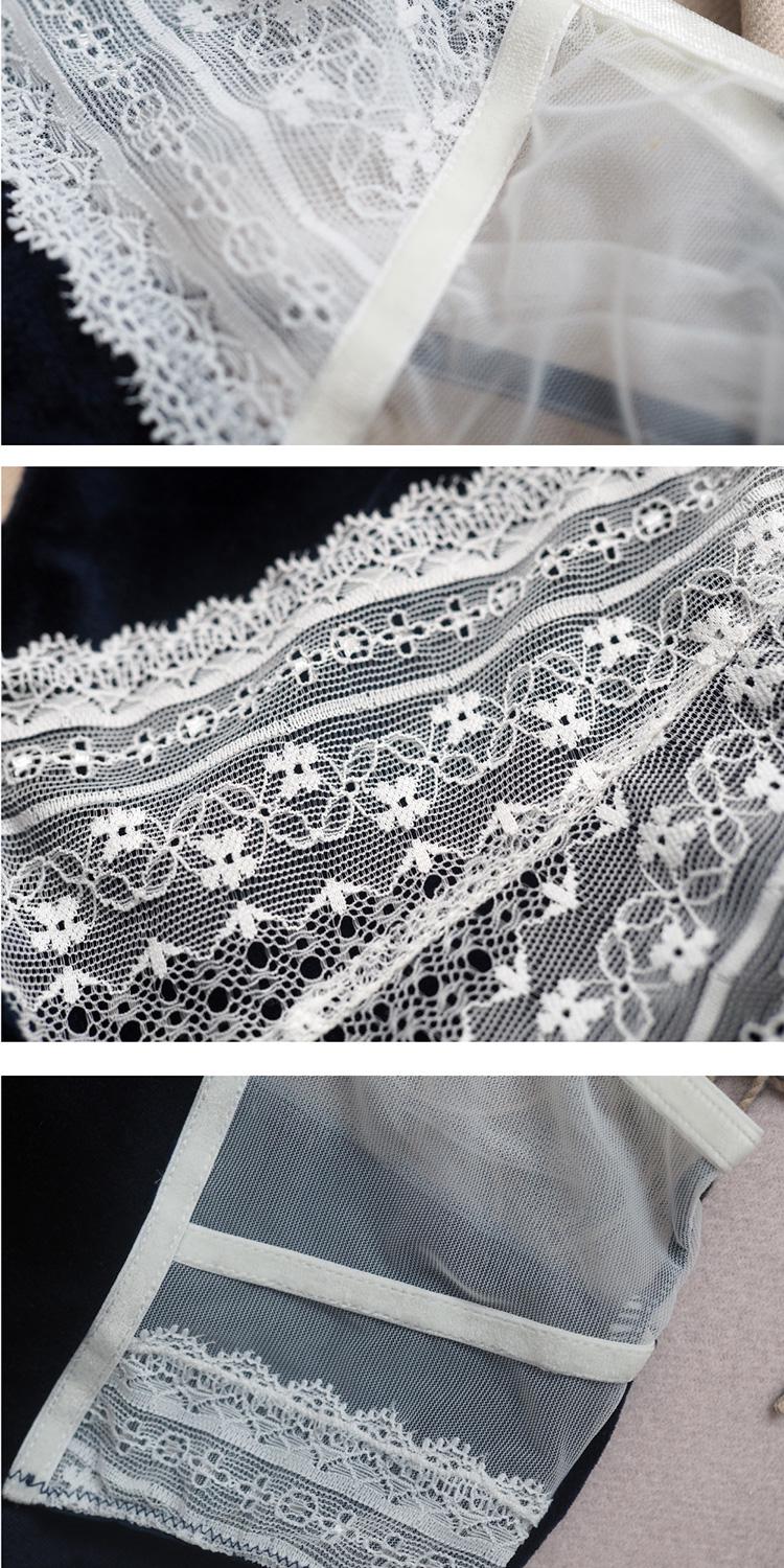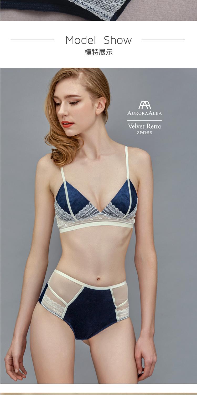 【DesignerWomenwear】AURORAALBA/AuroraAlba女士內衣AuroraAlba夜空藍天鵝絨拼復古絲絨乳白色蕾絲性感少女軟杯內衣高腰內褲套裝